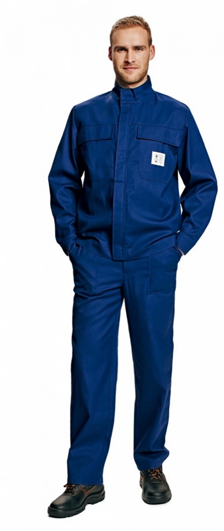 ochranný antistatický oděv • ochrana proti účinkům tepla a plamene, při svařecích pracích • ochrana proti kapalným chemikáliím, proti krátkodobému působení nízkotlakého proudu kapalin, malým sprejům, odstřikujícím částicím malého rozsahu • vhodné pro svařování a práce podobného druhu, kdy je člověk vystaven teplu • zaručuje ochranu při vystavení přímému plamenu po dobu 4 sekundy; 7 sekund při vystavení sálavému teplu o intenzitě 20 kW /m²; 5 sekund při kontaktním teple a slabému postřiku roztaveným železem (min. 60 g) a dalšími roztavenými kovy (min. 15 kapek) • antistatické vlastnosti jsou zaručeny pouze při nošení společně s antistatickými kalhotami