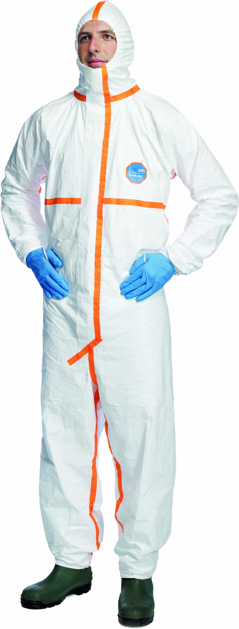 Tyvek® 800J, typ 3/4/5/6, model CHA5. Prodyšný ochranný oblek proti chemikáliím slučuje ochranu před postříkáním chemikáliemi na bázi vody s odolností a volností pohybu. Výrazné, přelepené švy. Poutka pro palec zabraňují vyhrnování rukávů.