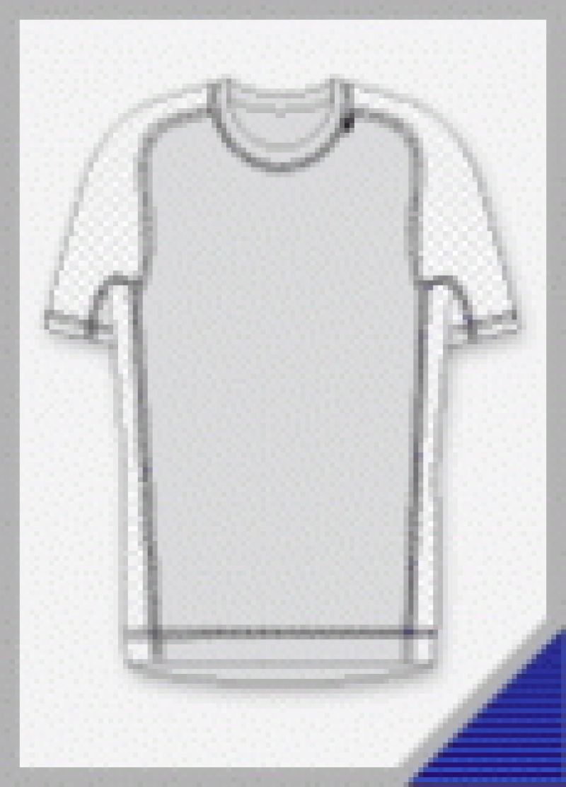 Střihové řešení: boční vsadky odlišného vzhledu. Raglánový rukáv - tím se docílí zvětšené pružnosti průramku. Ploché švy.
