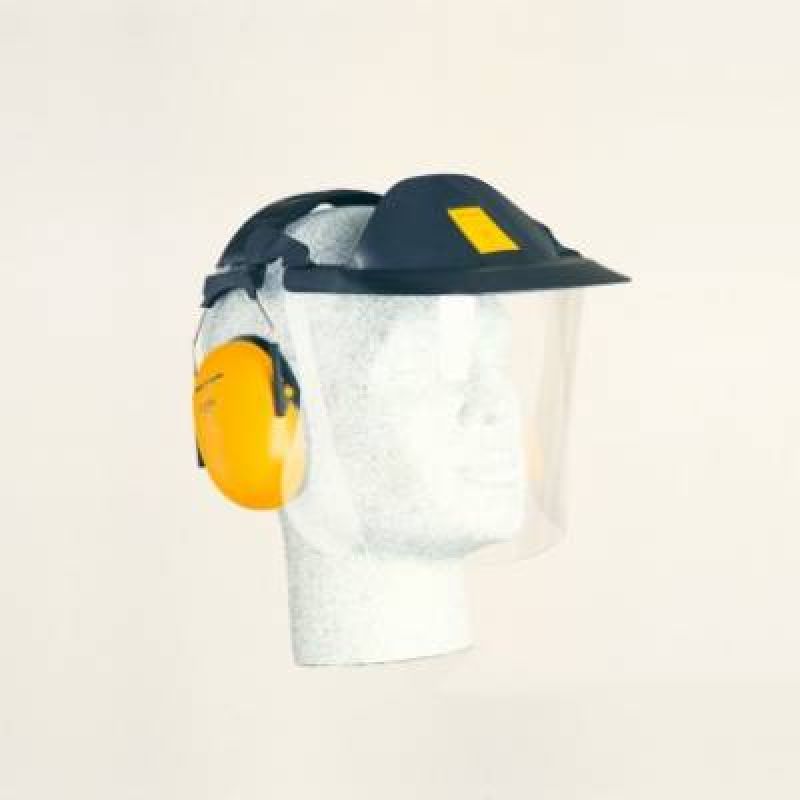 Polykarbonátový štít kombinovaný s mušlovým chráničem sluchu.