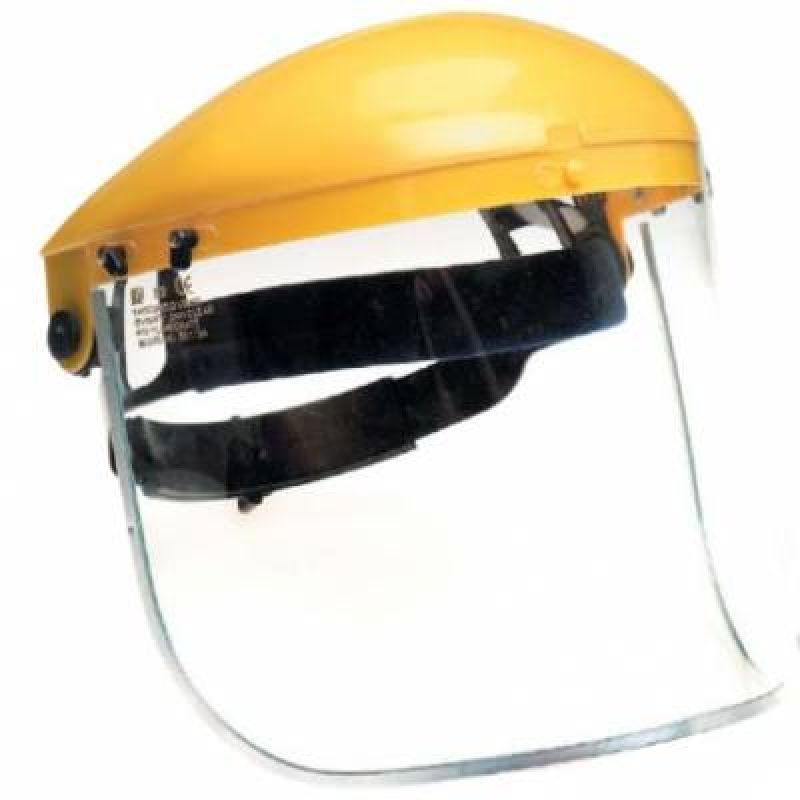 Čirý PC celoobličejový štít s náhlavním držákem,zorník třídy 1B.