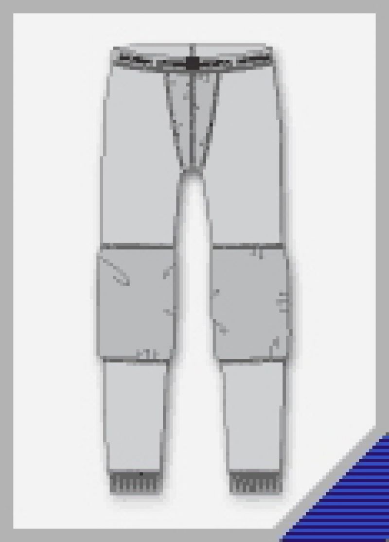 Střihové řešení: našitá guma pas, podložená kolena a přední díl