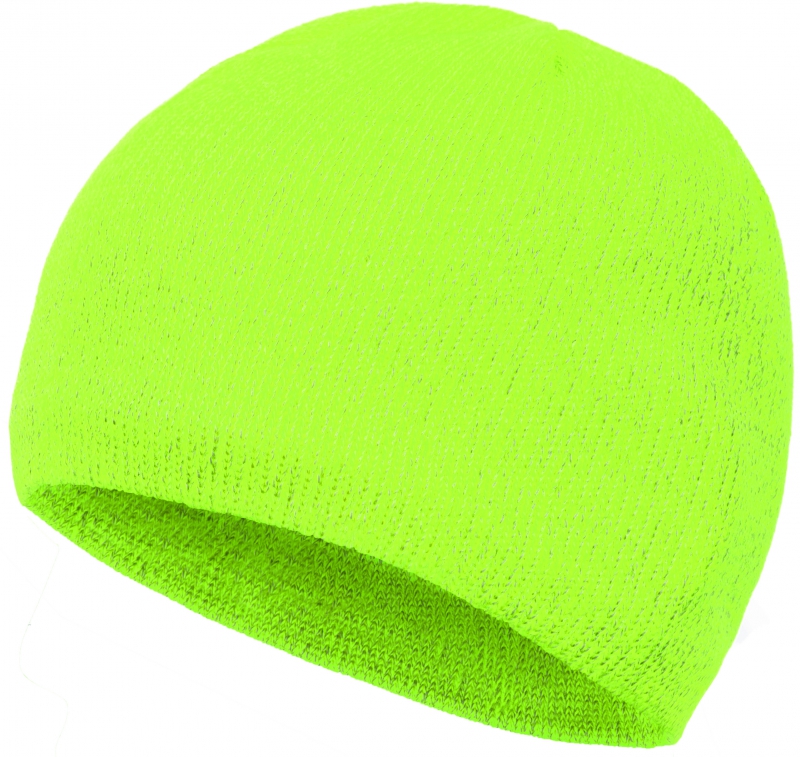 zimní pletená čepice; vnitřek polyester fleece 3M; vetkané reflexní vlákno.