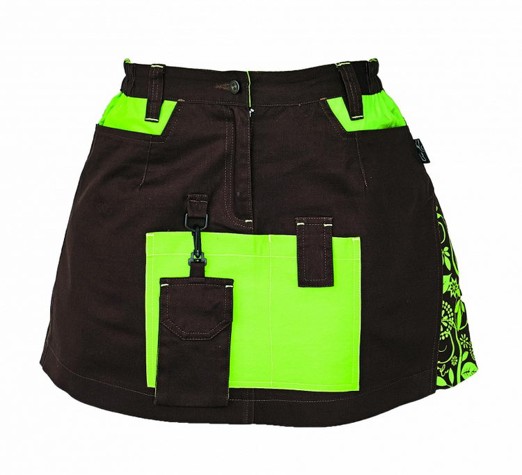 dámská sukně z originální dámské kolekce pracovních oděvů v moderním • barevném provedení s atraktivním potiskem • velmi pohodlný a na údržbu praktický materiál zajistí komfort při celodenním nošení • velká přední kapsa a závěsná kapsička na mobilní telefon • vhodné do práce i pro volnočasové aktivity, na zahradu