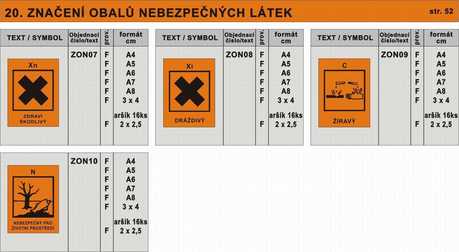 Značení obalů nebezpečných látek tabulky Bezpečnostní