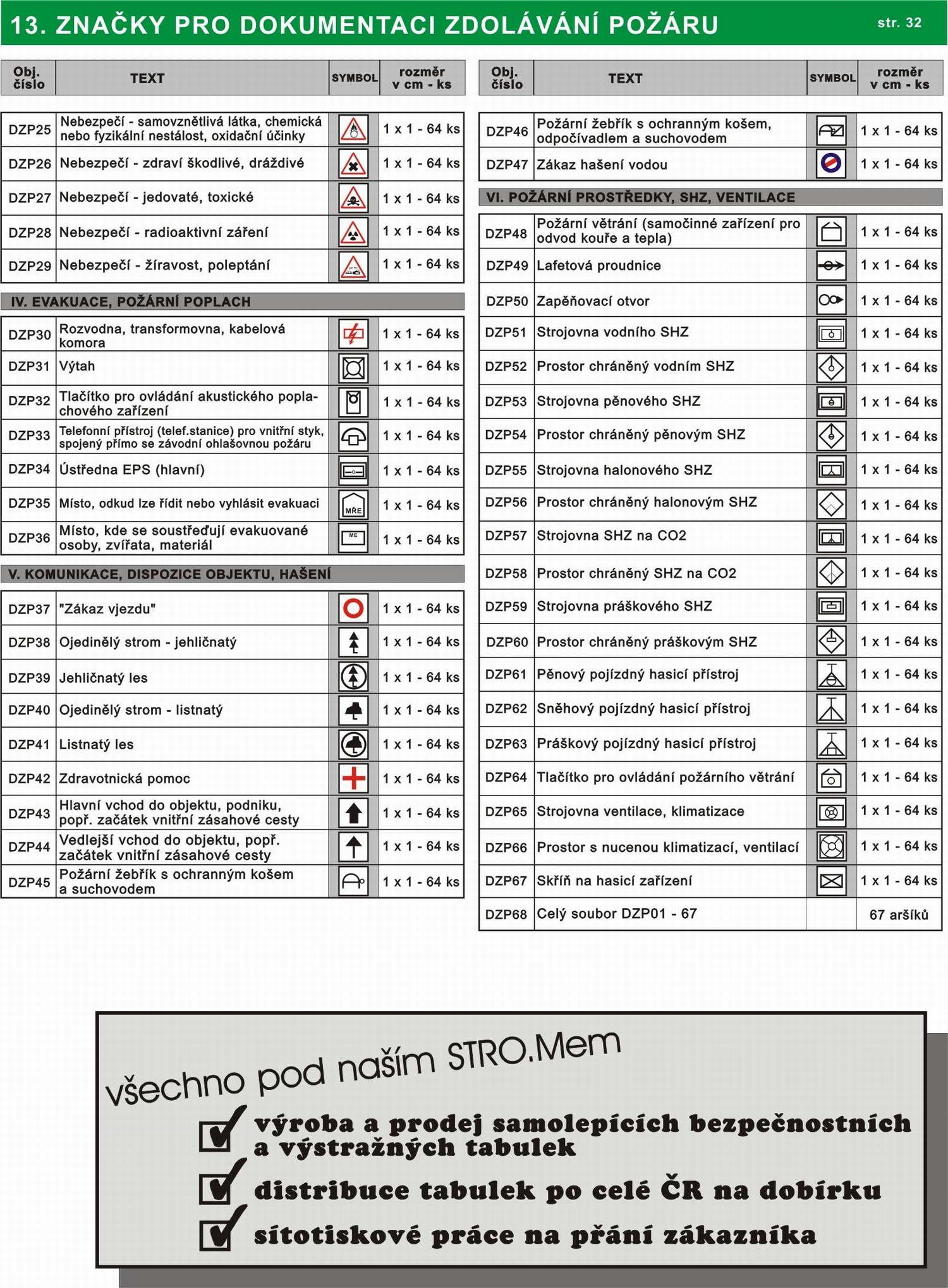 | Název zboží | Značky pro dokumentaci zdolávání požáru |