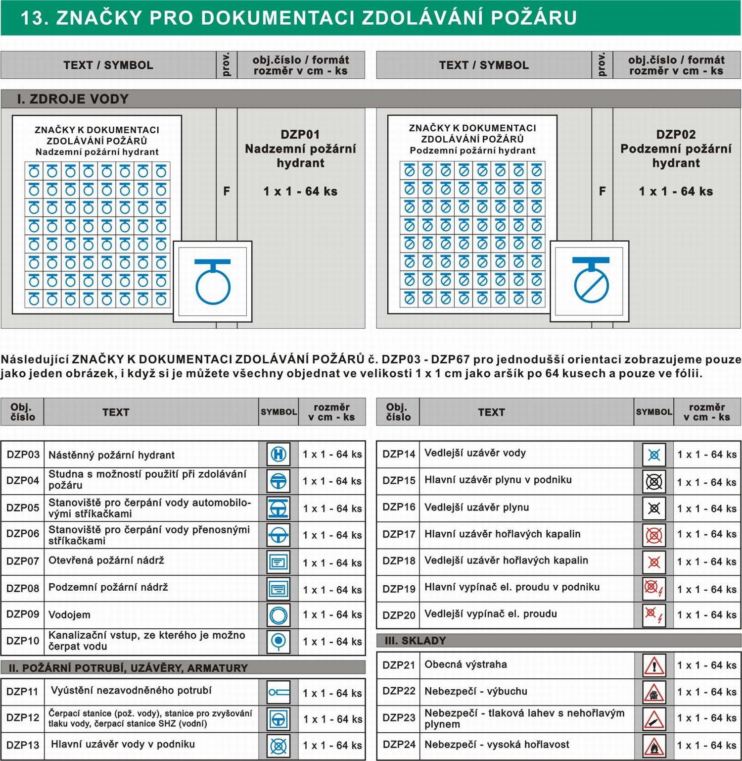 | Název zboží | Značky pro dokumentaci zdolávání požáru |
